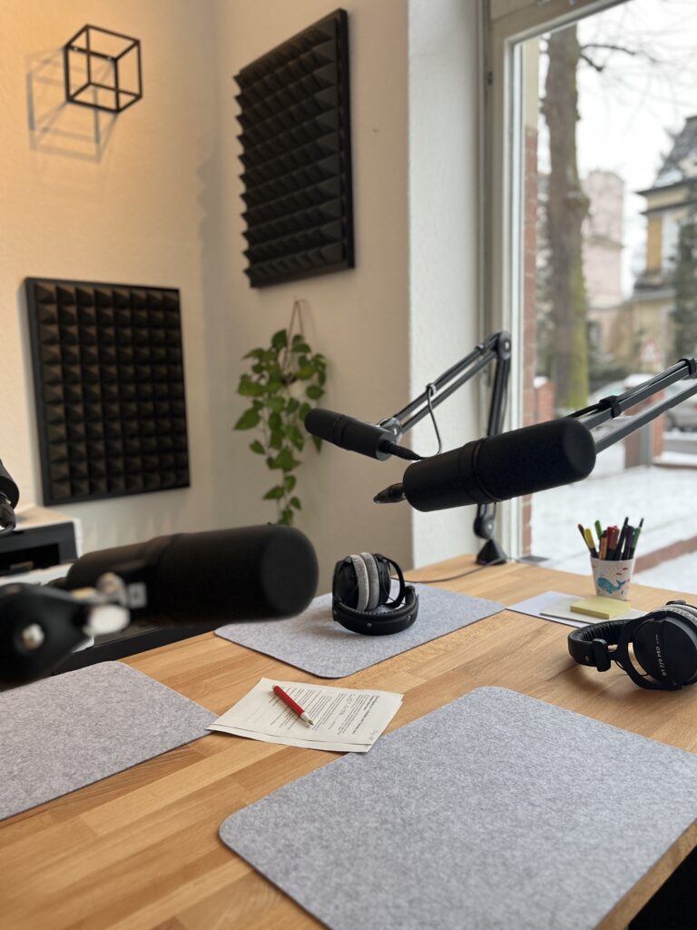 Unser professionell ausgestattetes Podcast-Studio für Aufzeichnungen mit bis zu vier Personen – inklusive Technik, Betreuung und Know-how steht für Dich bereit. Nach der Aufnahme übernehmen wir je nach Wunsch den kompletten Audio-Schnitt und die Nachbearbeitung in Studioqualität. Bei Bedarf kümmern wir uns auch um Hosting, Veröffentlichung und alle technischen Schritte, damit dein Podcast zielgerichtet und zuverlässig online geht.